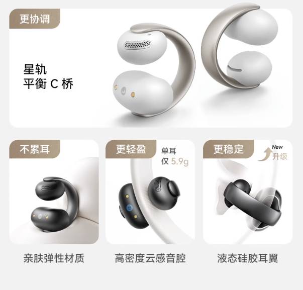 品牌SoundCore/声阔 型号A3388 麦克风支持支持麦克风 使用方式夹耳式 上市时间2025-07-20 售后服务18个月质保 品名AeroClip 保修期18个月 耳机和播放设备连接方式蓝牙 蓝牙功能支持蓝牙功能 电池容量580mAh 设备兼容性iOS、安卓、鸿蒙、Windows、MIUI 连接方式无线 降噪类型AI四麦通话降噪 耳机左右腔体间连接方式无线连接 续航时间单次8小时,搭配充电盒总续航32小时 产地中国大陆 功能音乐播放、蓝牙连接、通话功能、无感佩戴、超长续航、触屏、多点连接、防水、支持LDAC高解析音频编码、自定义EQ音效 蓝牙版本5.4 声道双边立体声 防水等级IPX4 耳机类别挂耳式耳机 是否同时支持两部手机支持同时连接两部手机 颜色分类【银河之辉】【星河旋涡】【粉珀星尘】