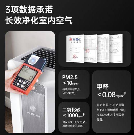艾泊斯(AirProce) 家用壁挂新风机AC-260全屋新风系统家用新风机通风换气装修除甲醛防雾霾