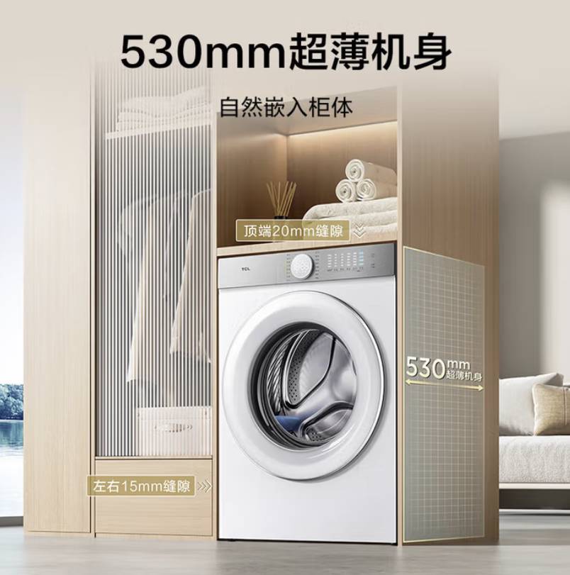 TCL 10KG超级筒T7H 超薄洗烘一体滚筒洗衣机1.2洗净比精华洗 54cm大筒径智能投放