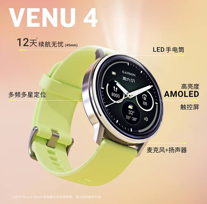 佳明(GARMIN)Venu4隐锋黑(45mm)心率跑步骑行游泳时尚运动智能手表